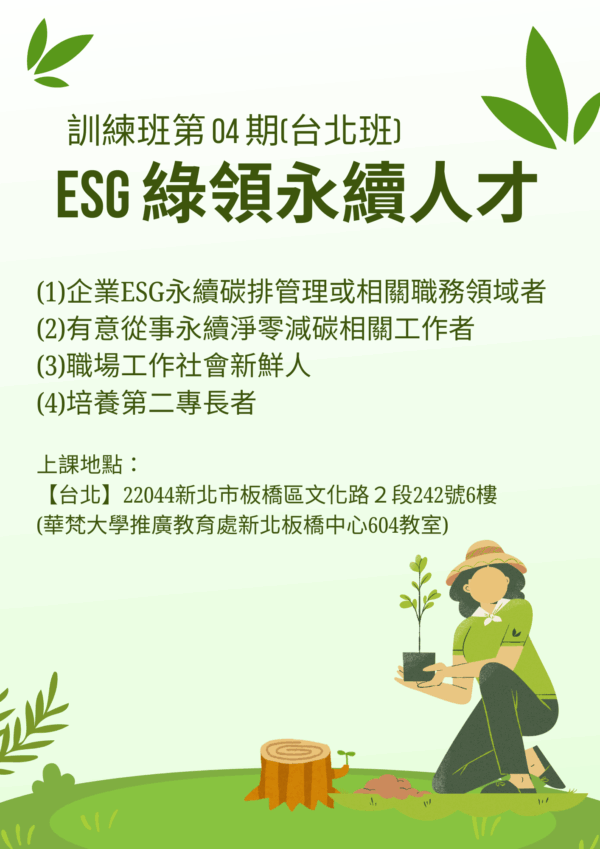 ESG 綠領永續人才訓練班第 04 期(台北班)